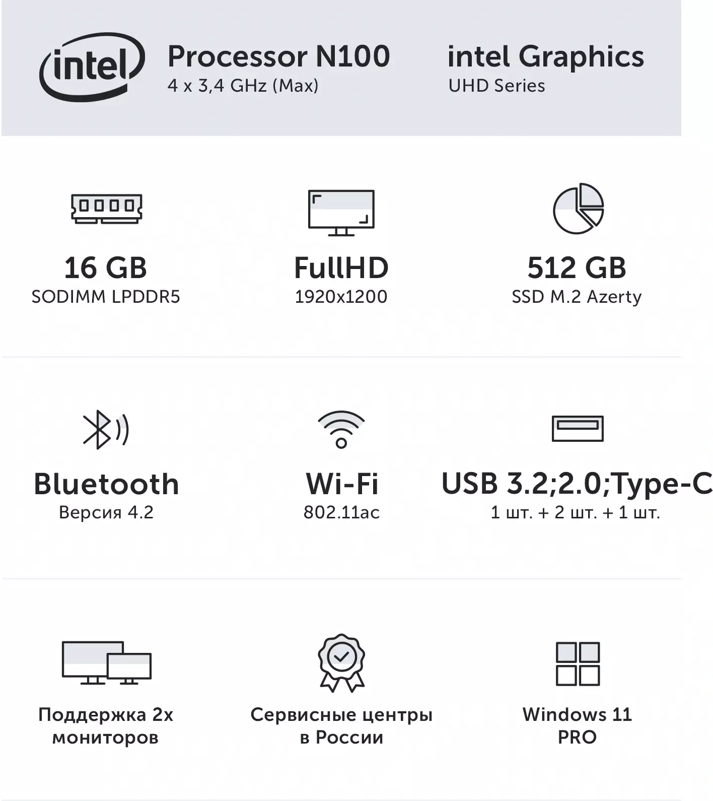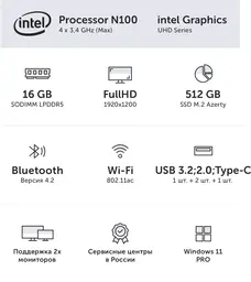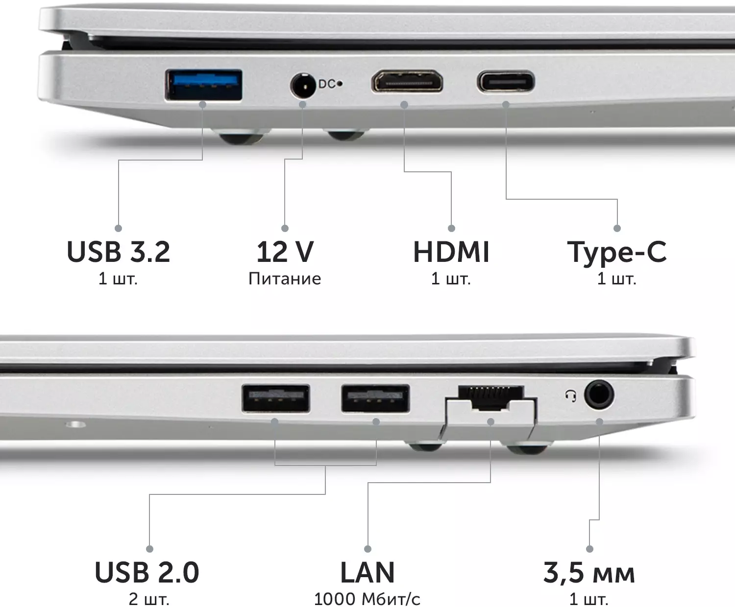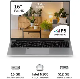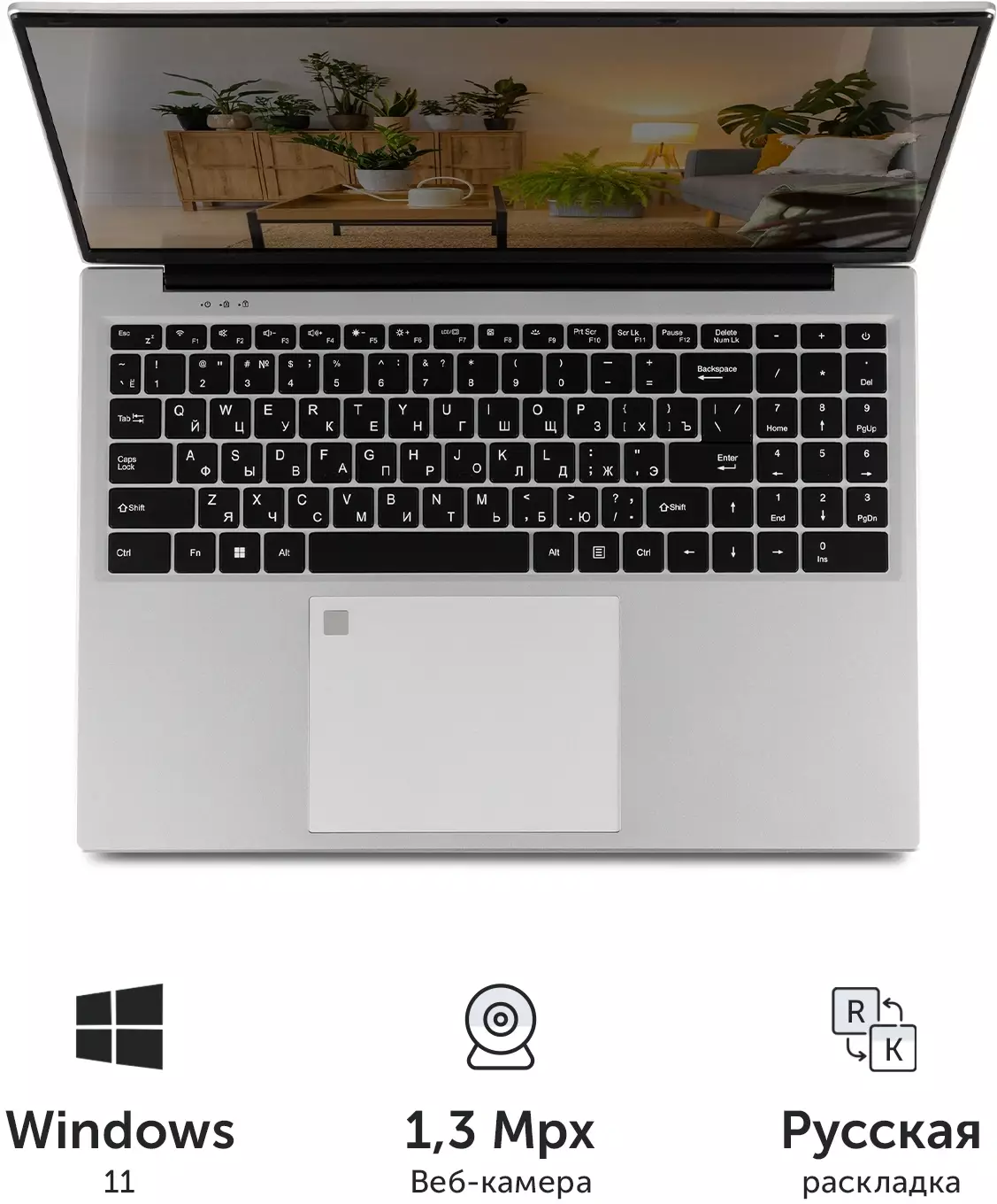 Ноутбук Azerty Memoir RB-1650, 16", IPS, Intel N-series N100, LPDDR5 16ГБ, SSD 512ГБ, Intel UHD Graphics, серебристый (120-0716)