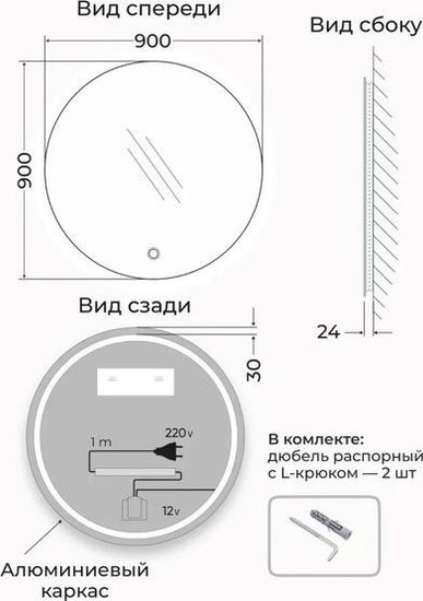 • Тип зеркало с подсветкой
