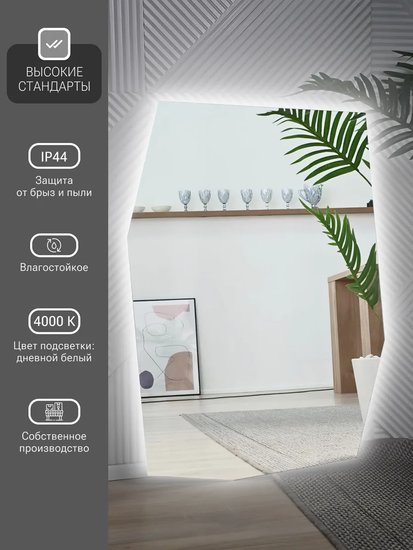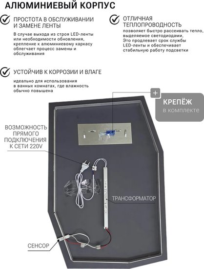 • Комплектация крепеж, подсветка, трансформатор, шнур с вилкой, дюбель-крючки