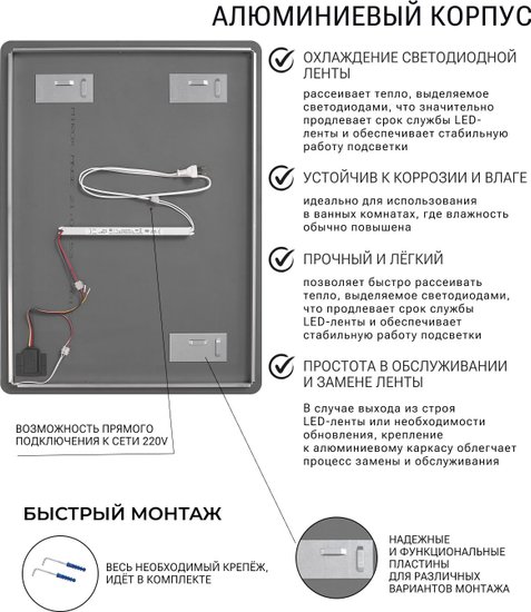 • Комплектация крепеж, трансформатор, шнур с вилкой, дюбель-крючки