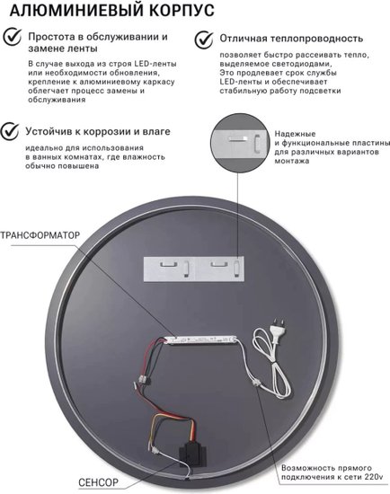• Комплектация крепеж, подсветка, трансформатор, шнур с вилкой, дюбель-крючки (2 шт.)