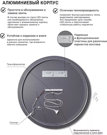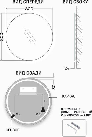 ✅ Круглое зеркало на стену в стильной раме – идеальное решение для тех, кто хочет добавить уникальности в интерьер. Дневная белая подсветка (4000К) создает комфортное освещение, которое приятно воспринимается глазом.✅ Сенсорное включение на движение позволяет легко управлять освещением, просто сделав взмах рукой. Это зеркало станет отличным дополнением для прихожей, спальни, гостиной, детской или коридора, наполняя пространство уютом и светом.✅ Изготовлено из влагостойкого полотна со шлифованной кромкой, что делает его безопасным и удобным в использовании. Это зеркало можно устанавливать в помещениях с повышенной влажностью, таких как ванная комната, душевая кабина, баня или туалет.✅ Матовая окантовка шириной 10 мм выполнена методом УФ-печати с использованием экологически чистых чернил, что гарантирует отсутствие вредных примесей и устойчивость к влаге. ✅ Декоративное светящееся зеркало укомплектовано прочными крепежами и готово к самостоятельному монтажу, что делает его установку простой и быстрой. ⚠️ Не упустите возможность преобразить ваше пространство с помощью этого стильного и функционального элемента!✅ Круглое зеркало на стену в стильной раме – идеальное решение для тех, кто хочет добавить уникальности в интерьер. Дневная белая подсветка (4000К) создает комфортное освещение, которое приятно воспринимается глазом.✅ Сенсорное включение на движение позволяет легко управлять освещением, просто сделав взмах рукой. Это зеркало станет отличным дополнением для прихожей, спальни, гостиной, детской или коридора, наполняя пространство уютом и светом.✅ Изготовлено из влагостойкого полотна со шлифованной кромкой, что делает его безопасным и удобным в использовании. Это зеркало можно устанавливать в помещениях с повышенной влажностью, таких как ванная комната, душевая кабина, баня или туалет.✅ Матовая окантовка шириной 10 мм выполнена методом УФ-печати с использованием экологически чистых чернил, что гарантирует отсутствие вредных примесей и устойчивость к влаге. ✅ Декоративное светящееся зеркало укомплектовано прочными крепежами и готово к самостоятельному монтажу, что делает его установку простой и быстрой. ⚠️ Не упустите возможность преобразить ваше пространство с помощью этого стильного и функционального элемента!