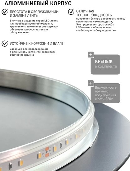 • Комплектация крепеж, подсветка, трансформатор, шнур с вилкой, дюбель-крючки