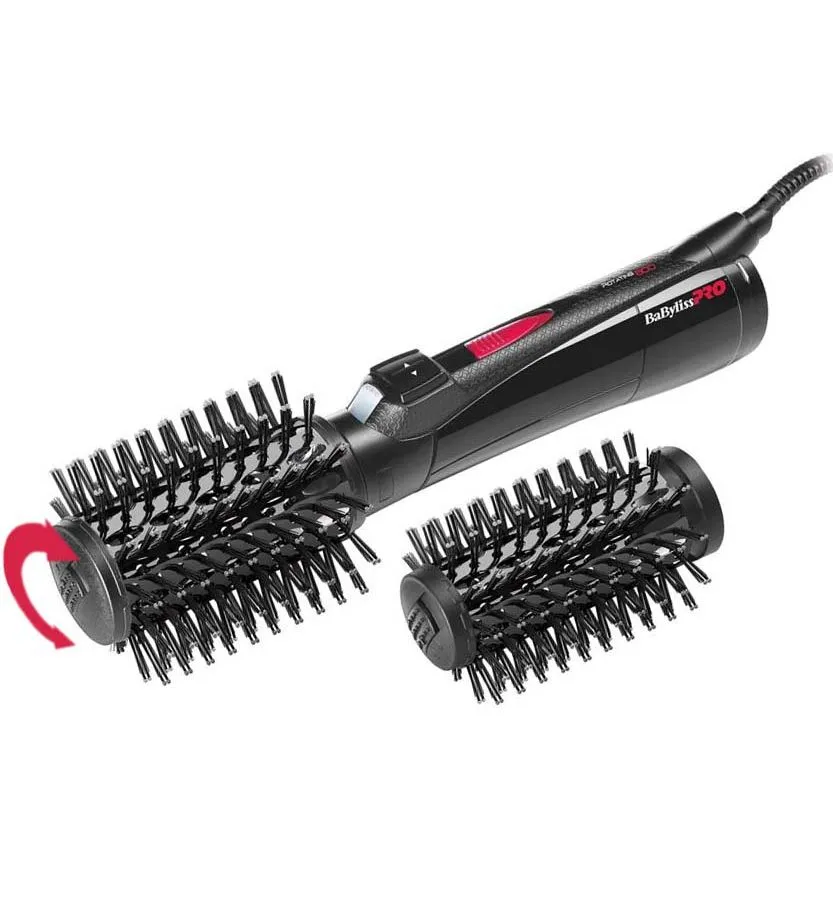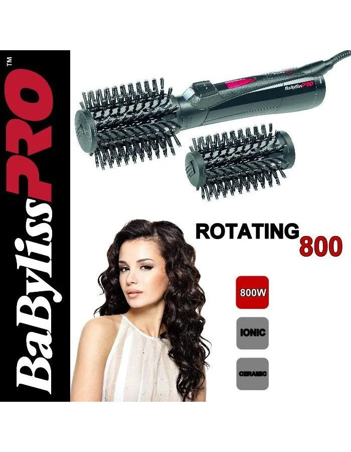 BaByliss Pro Rotating 800 BAB2770E – профессиональная фен-щетка, позволяющая сушить волосы и делать укладку одновременно. 2 брашинг-насадки диаметром 40мм и 50мм имеют керамическое покрытие. Их уникальность в возможности вращения в двух направлениях. Это помогает легко и быстро создавать прикорневой объем, выпрямлять вьющиеся или завивать прямые волосы. Натуральные и нейлоновые щетинки с закругленными кончиками не травмируют кожу головы во время сушки. Функция ионизации насыщает поток воздуха отрицательными частицами, которые защищают волосы от пересушивания, исключают электризацию, делают их гладкими и блестящими.