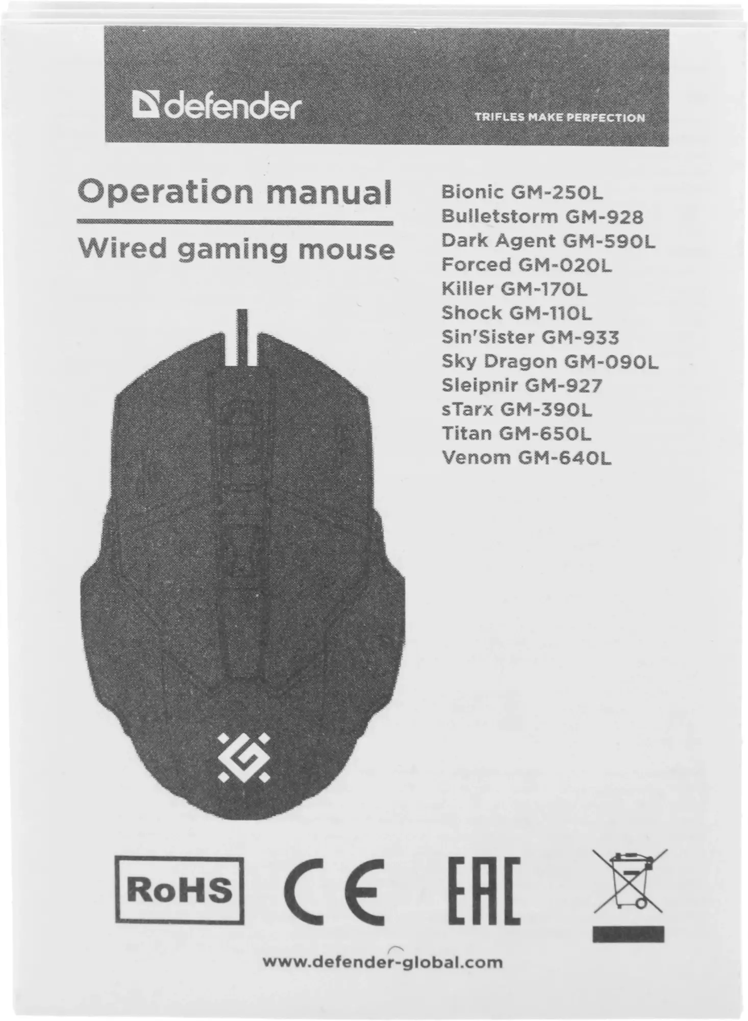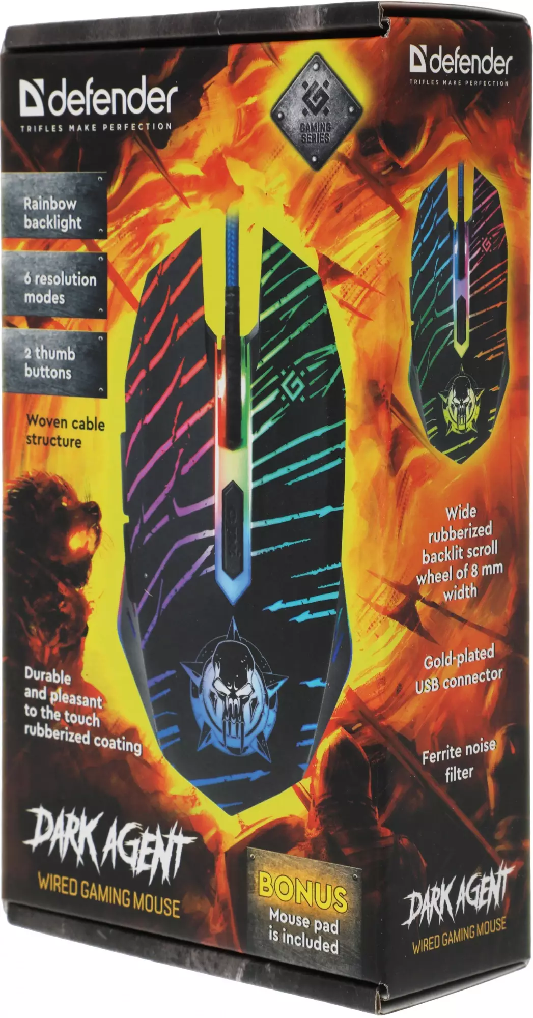 ОсобенностиПрограммное обеспечение Defender Game Center. Редактор макросов. Эмуляция клавиш клавиатуры. Плетеная структура кабеля. Высокопрочный долговечный кабель. Позолоченный USB-коннектор. Ферритовый фильтр помех. Широкое прорезиненное колесо прокрутки шириной 8 мм с подсветкой.