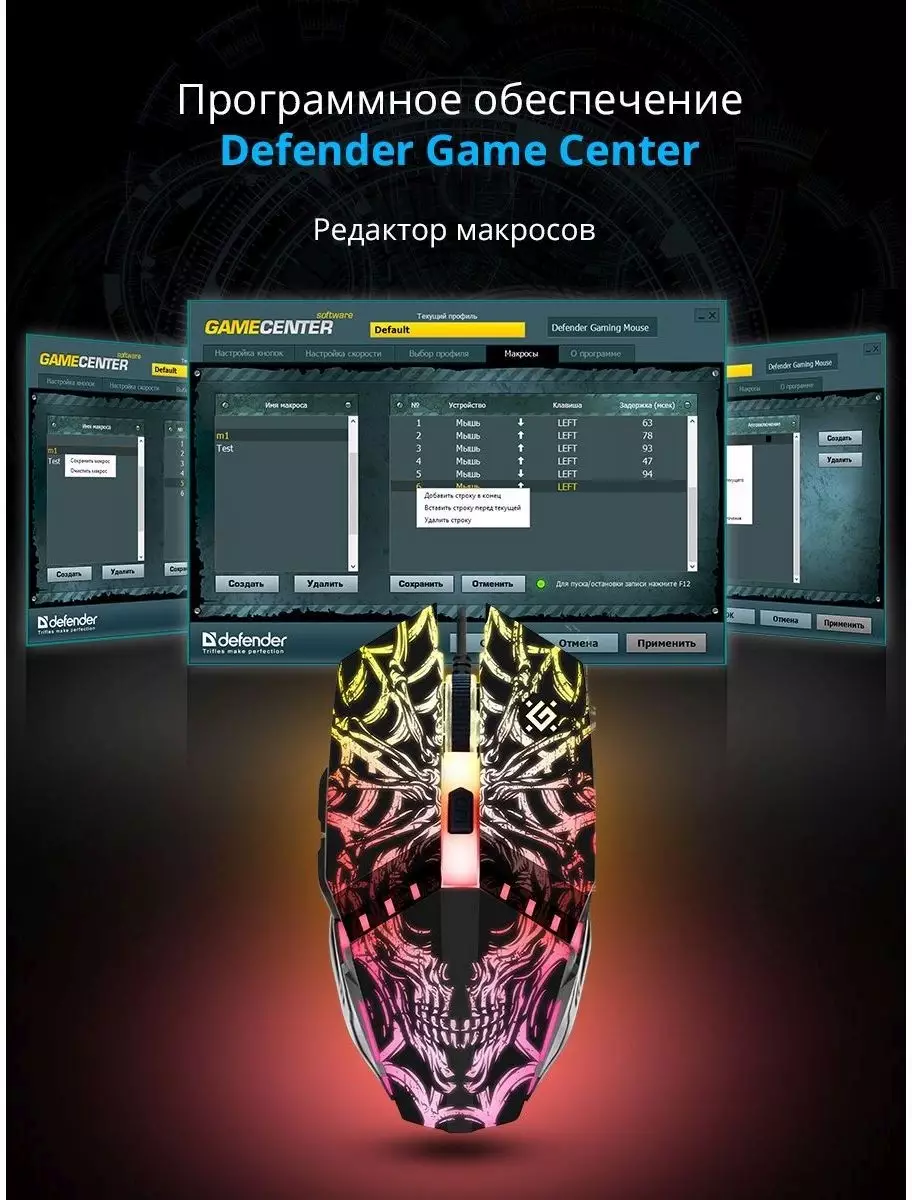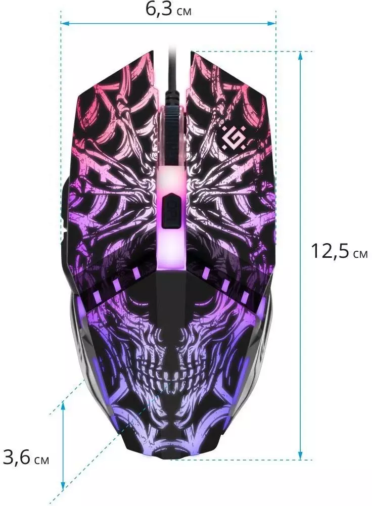 ОсобенностиПереливающаяся подсветка. Программное обеспечение Defender Game Center. Широкое прорезиненное колесо прокрутки шириной 8 мм с подсветкой. 2 дополнительные боковые кнопки.
