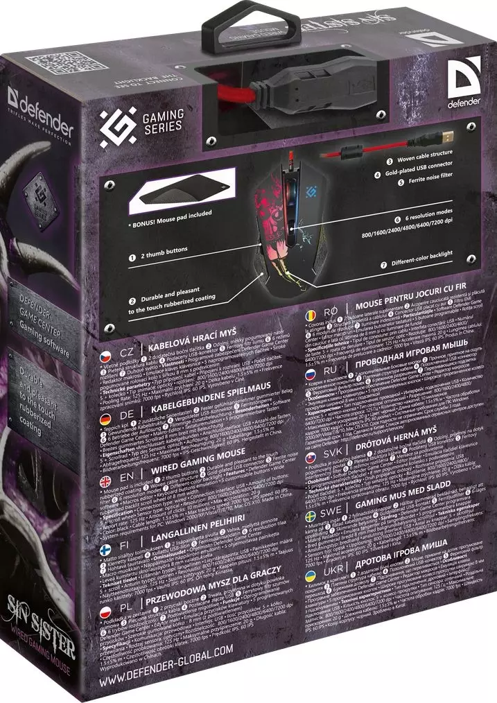 ОсобенностиПрограммное обеспечение Defender Game Center. Редактор макросов. Эмуляция клавиш клавиатуры. Плетеная структура кабеля. Ферритовый фильтр помех. Широкое прорезиненное колесо прокрутки шириной 8 мм с подсветкой.