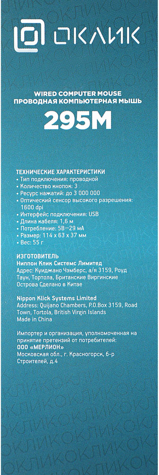 КомплектацияПроводная компьютерная мышь 295M