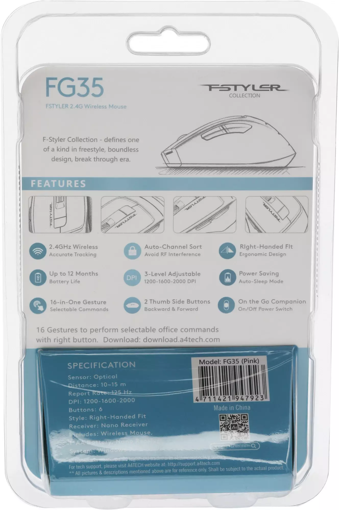 Мышь A4Tech Fstyler FG35, розовый/белый (fg35 pink)