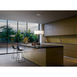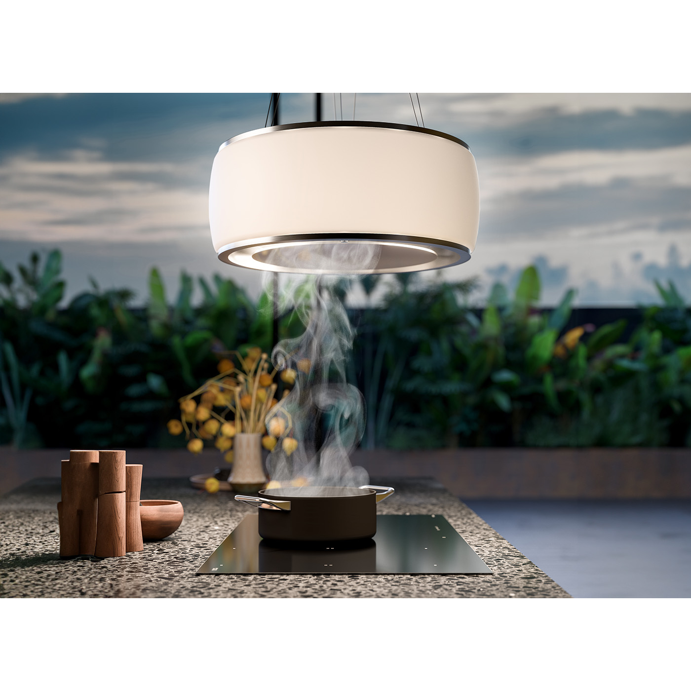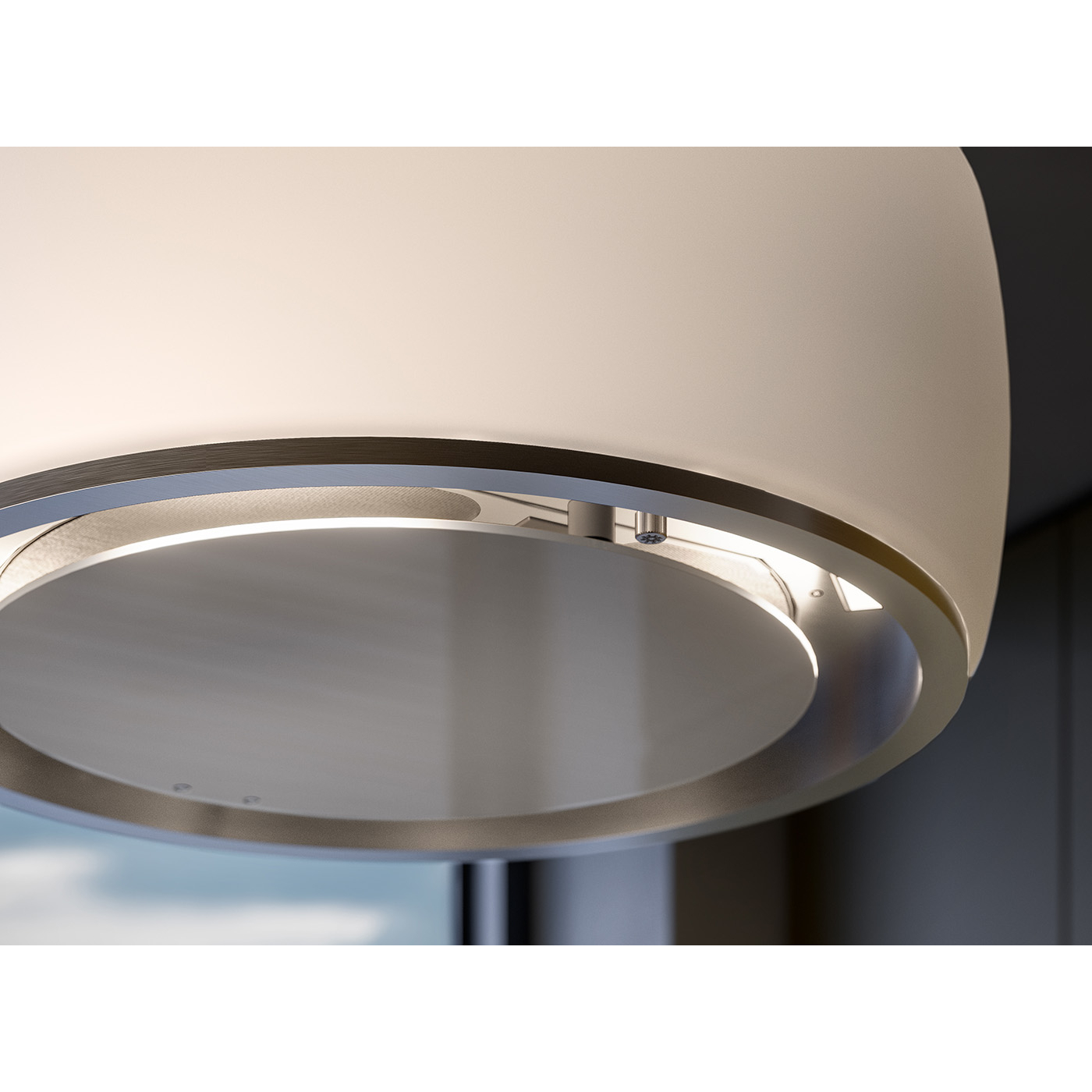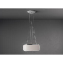 Вытяжка FALMEC SOFFIO IS.58 White Satin Glass, серия Circle.Tech, подвесная, 58 см, электронное управление, светодиодное освещение, периметральное всасывание, технология горизонтальной фильтрации, 4 скорости, рециркуляция, макс. Производительность 600 м3/ч, угольный фильтр в комплекте, горизонтальное вращение двигателя, пульт ДУ (опция), цвет белый