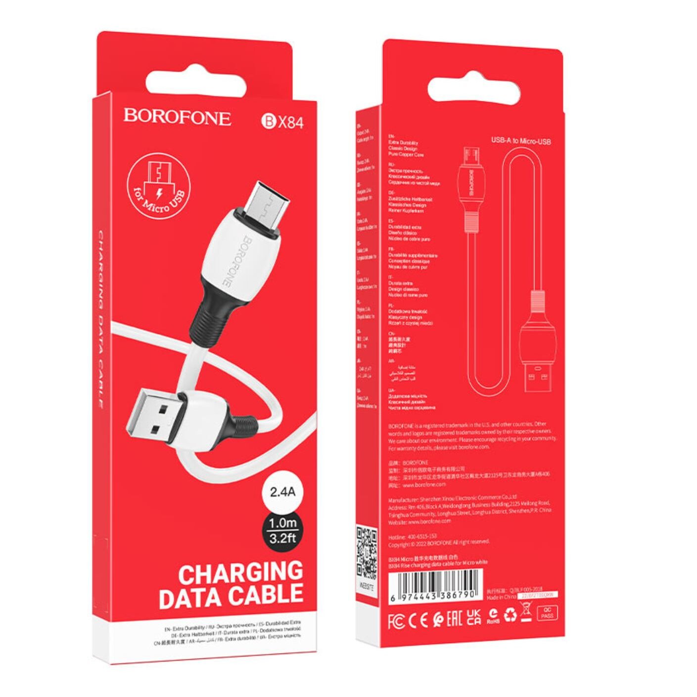 Дата-кабель BOROFONE BX84 Rise charging data cable Micro 1м (белый)