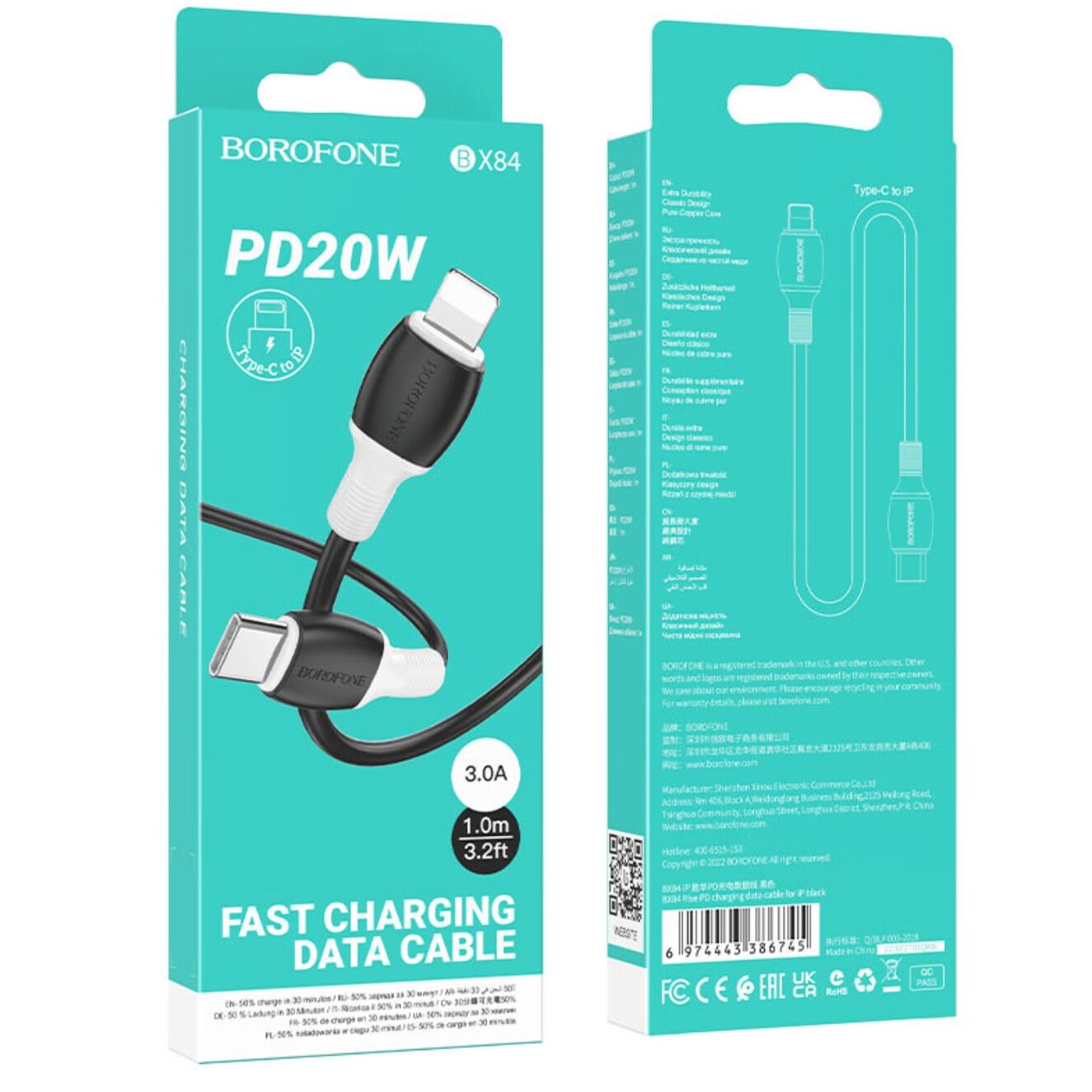 Дата-кабель BOROFONE BX84 Rise charging data cable Lightning 1м (чёрный)