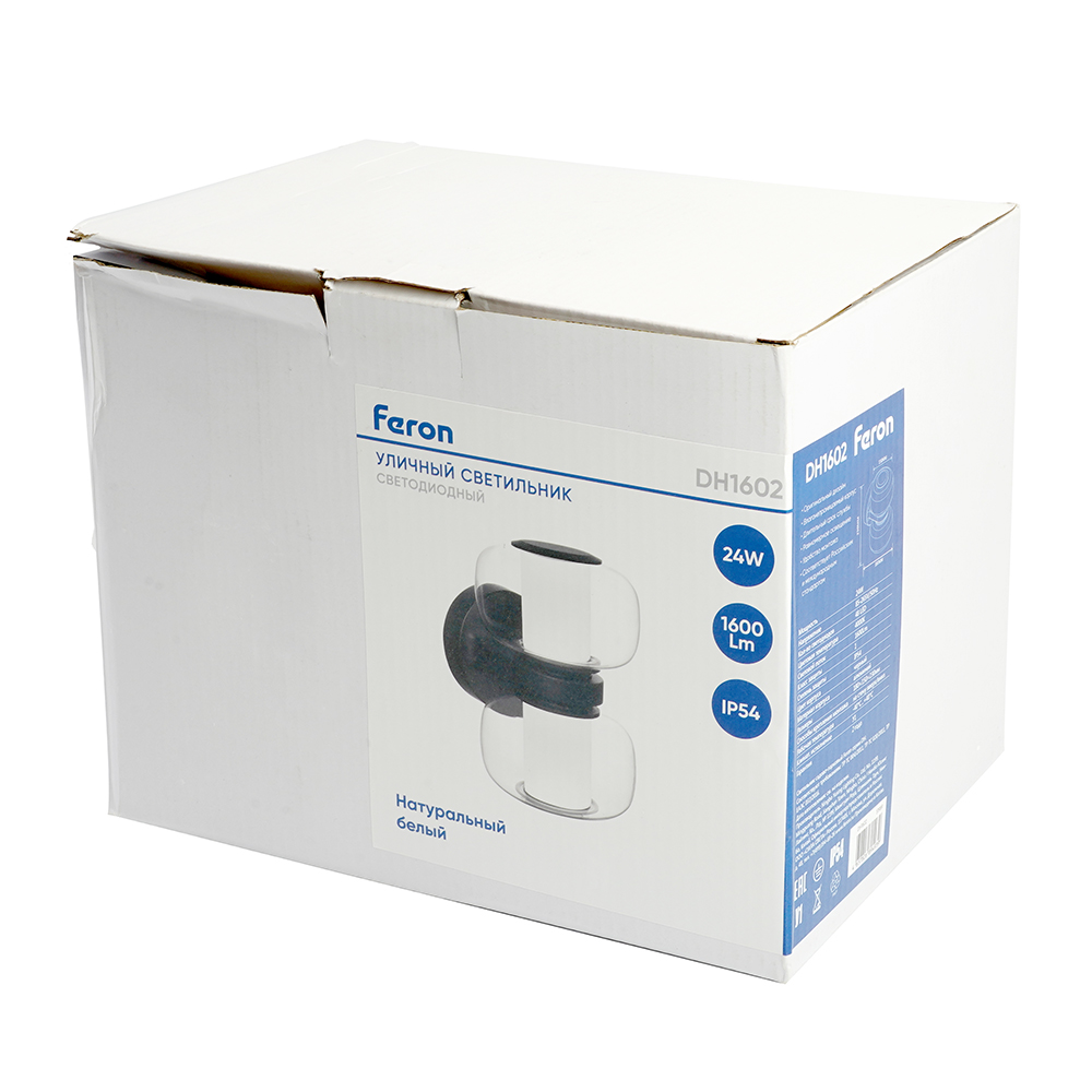 Светильник уличный светодиодный, на стену вверх/вниз (ДБУ) FERON DH1602, серия Париж, 24W, 4000К (белый натуральный), 85-265V/50Гц, 1600Lm, IP54, 48LED*SMD2835, класс защиты 1, раб.t -40°C...+40°C, цвет черный, корпус алюминий, 180*150*230мм,