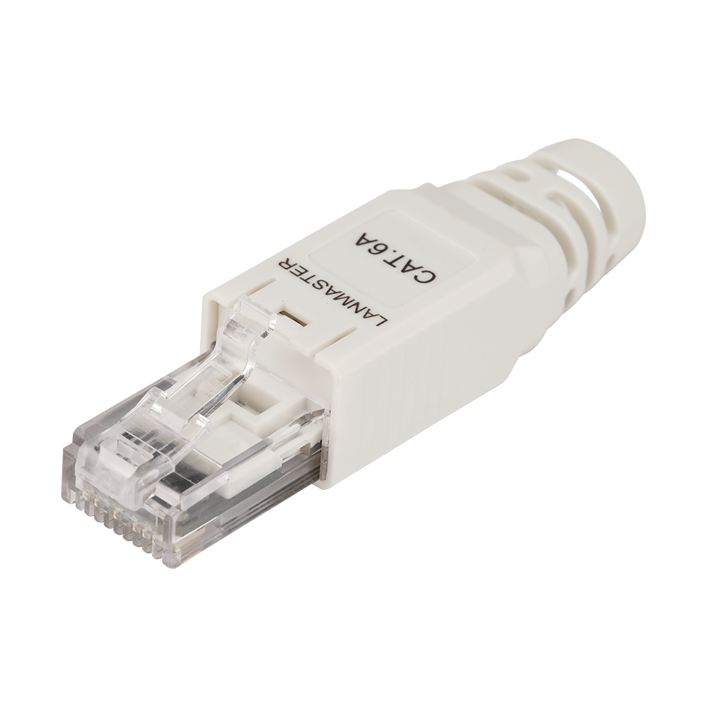 Коннектор RJ-45 предназначен для оконцевания неэкранированного кабеля витая пара в полевых условиях. Разъем может быть полезным при необходимости подключения оборудования напрямую, без установки розетки RJ-45.Для монтажа разъема из инструментов будет достаточно обычных бокорезов. Вместо ударной технологии используется более щадящая нажимная, что способствует улучшению частотных свойств. Допускается многократная переустановка коннектора на разные кабели.Для удобства монтажа, на вставке расположена схема подключения проводников кабеля, в соответствии со схемами T568A и T568B.После разделки кабель надежно фиксируется крышкой коннектора.