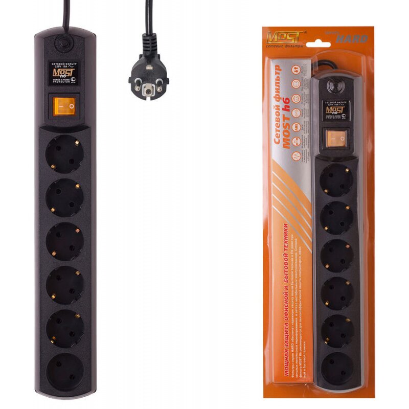 Сетевой фильтр Most H6 2м (6 розеток) черный
