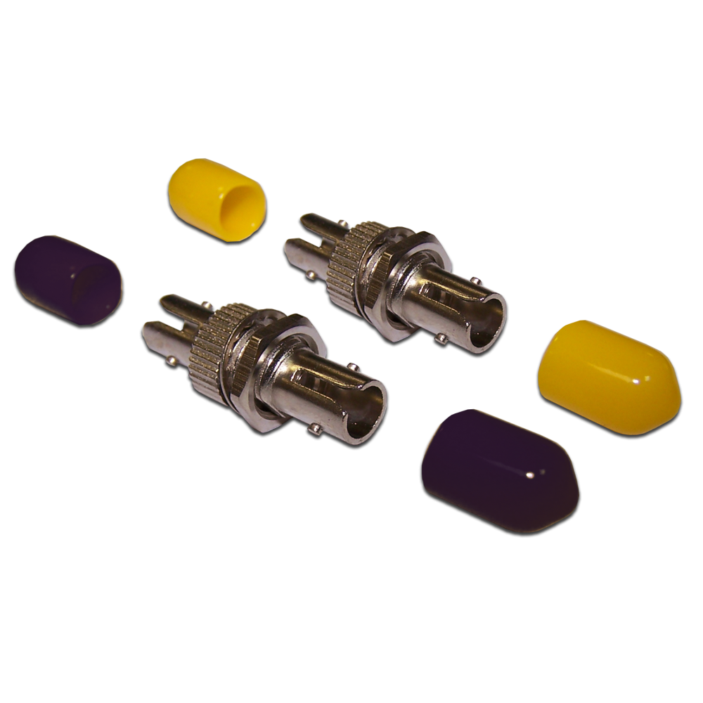 Адаптеры устанавливаются в оптическом кроссе, настенного или стоечного типа, а также оптических розетках. Адаптеры являются проходными розетками и служат для точного центрирования наконечников коннекторов, а также для фиксации коннекторов в прижатом к друг другу состоянии. Производятся адаптеры для многомодовых (черные колпачки) и одномодовых (желтые колпачки) коннекторов.Адаптер ST соединяет два кабеля оконцованные ST коннекторами. Коннектором может быть оконцованно как волокно в кабеле, пигтейл, либо патчкорд.