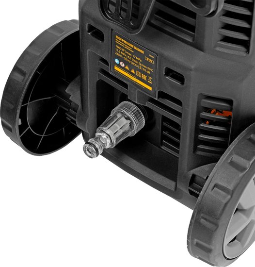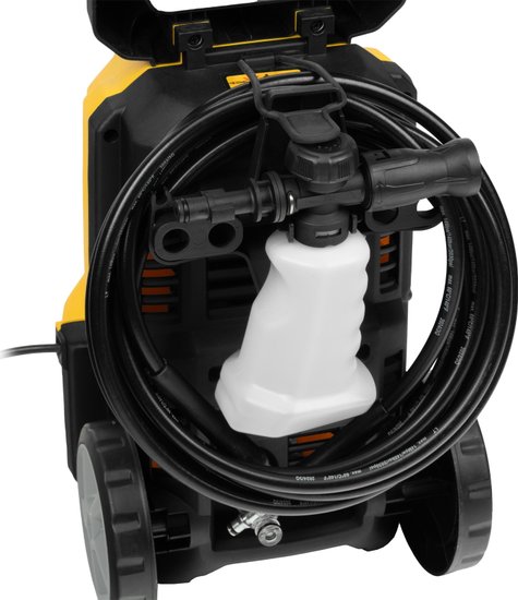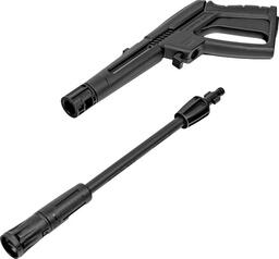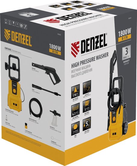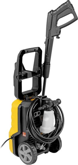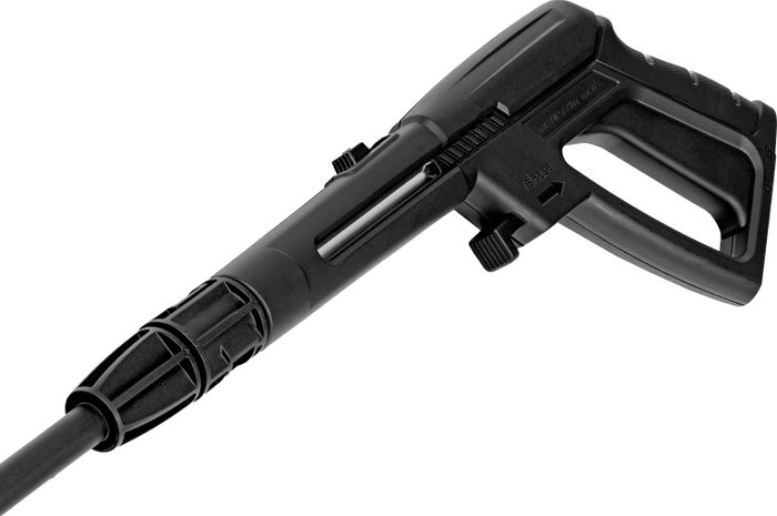 • Комплектация - Мойка высокого давления, - Кронштейн для шланга, - Шланг высокого давления, - Пистолет, - Удлинитель пистолета с регулируемым соплом, - Пеногенератор с бачком для моющего средства, - Входной штуцер с фильтром, - Быстросъемный коннектор шланга, кронштейн-держатель пистолета, - Кронштейн сетевого кабеля, - Игла для прочистки сопла, - Комплект крепежа, - Инструкция с гарантийным талоном