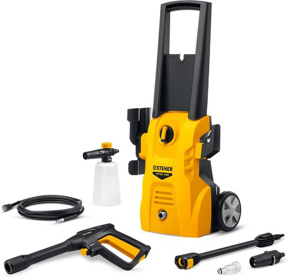 Комплектация- Мойка высокого давления;- Рукоятка;- Пистолет;- Распылитель;- Насадка;- Шланг высокого давления (5 м);- Пеногенератор (0,75 л);- Фильтр;- Игла для прочистки;- Руководство по эксплуатации.