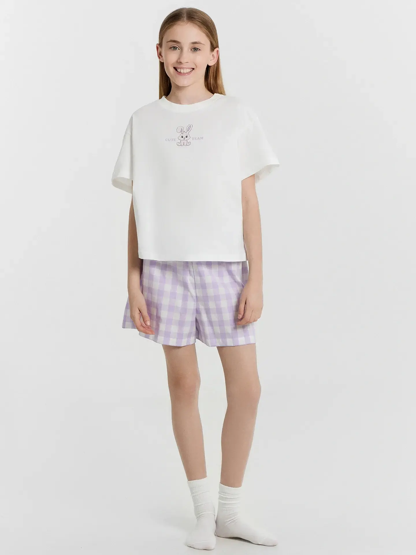 Пижама детская Mark Formelle 567748 (р.116-60, белый/клетка на светло-лиловом)