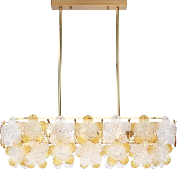 - В коллекции Tender цветочные мотивы обретают новое звучание благодаря гармоничному сочетанию прозрачного и янтарного стекла. Прозрачное стекло создает ощущение легкости и воздушности, в то время как янтарные оттенки добавляют глубину и теплоту композиции. Это уникальное сочетание материалов создает впечатление, будто светильники парят в воздухе, излучая мягкое и уютное свечение. Основание в цвете латунь служит не только функциональным элементом, но и эстетическим дополнением. Ее теплый золотистый оттенок прекрасно сочетается с цветочными мотивами, создавая целостный и гармоничный образ. Площадь освещения: 24 м². В коллекции Tender цветочные мотивы обретают новое звучание благодаря гармоничному сочетанию прозрачного и янтарного стекла. Прозрачное стекло создает ощущение легкости и воздушности, в то время как янтарные оттенки добавляют глубину и теплоту композиции. Это уникальное сочетание материалов создает впечатление, будто светильники парят в воздухе, излучая мягкое и уютное свечение. Основание в цвете латунь служит не только функциональным элементом, но и эстетическим дополнением. Ее теплый золотистый оттенок прекрасно сочетается с цветочными мотивами, создавая целостный и гармоничный образ. Площадь освещения: 24 м².