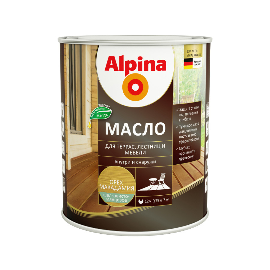 Масло Alpina для террас лестниц и мебели шелк-глянц орех макад 0,75л/0,68кг