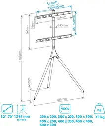 • Подходит для телевизоров c диагональю 32", 35", 37", 39", 40", 42", 43", 45", 46", 48", 49", 50", 52", 55", 60", 65", 70" "