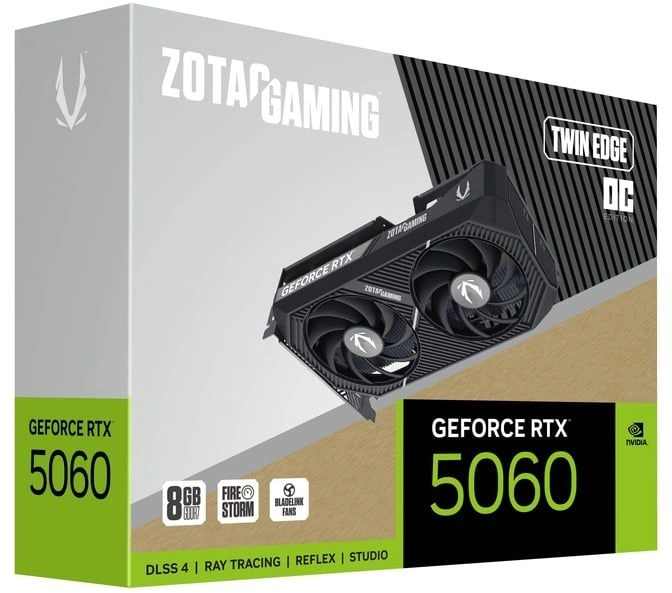 Видеокарта Zotac PCI-E 5.0 RTX 5060 TWIN EDGE NVIDIA GeForce RTX 5060 8Gb 128bit GDDR7 2497/28000 HDMIx1 DPx3 HDCP Ret