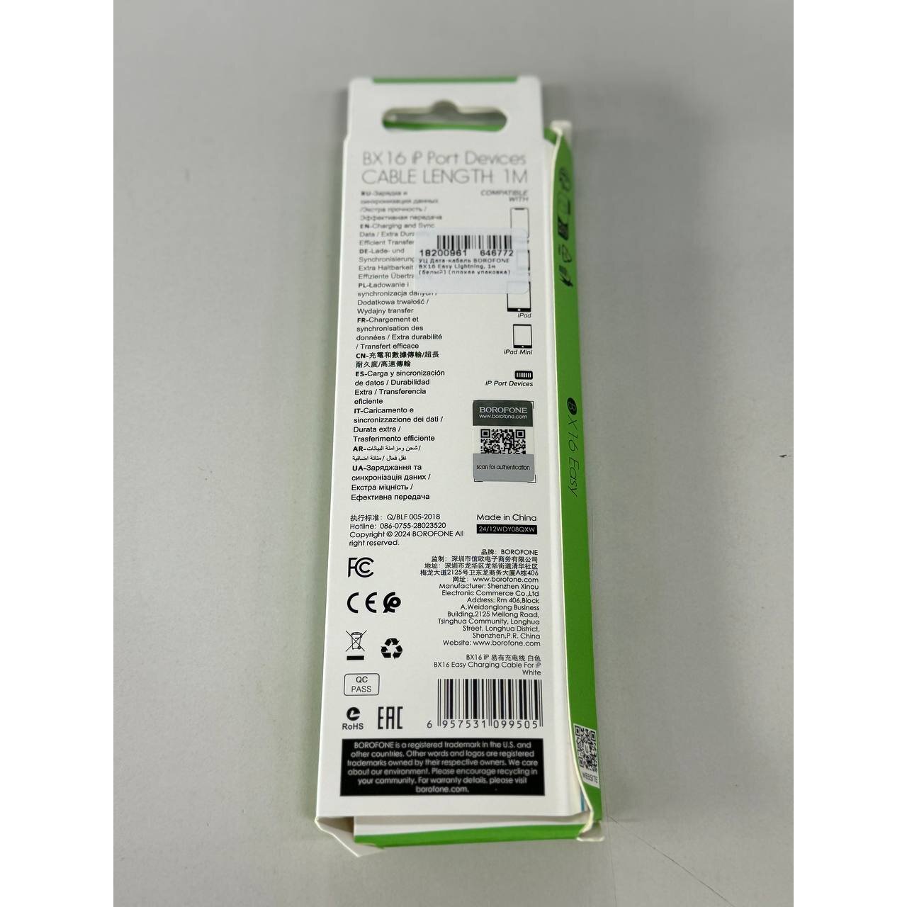 УЦ Дата-кабель BOROFONE BX16 Easy Lightning, 1м белый (плохая упаковка)