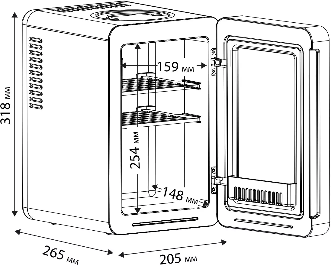 • Общий объем холодильника 6 л