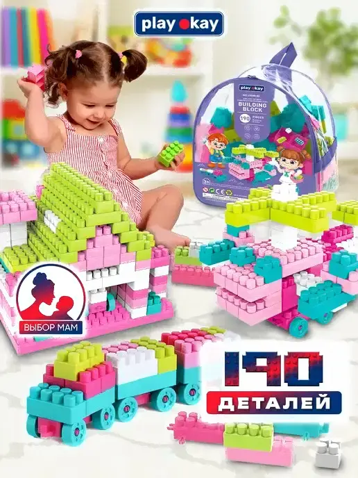 Конструктор PlayOkay Блочный конструктор (190эл, розовый)