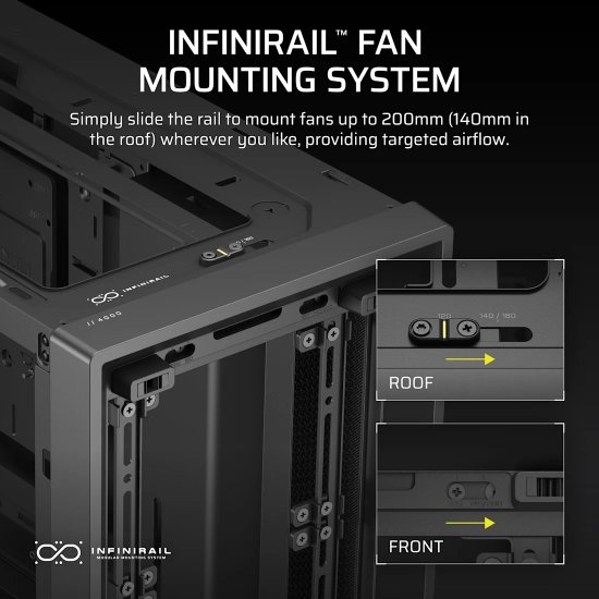 • Расположение вентиляторов сверху:3x120 мм или 2x140 ммспереди:3x120 мм или 2x140 мм или 2x200 ммсбоку:3x120 мм или 2x140 ммснизу:2x120 ммсзади:1x120 мм или 1x140 мм