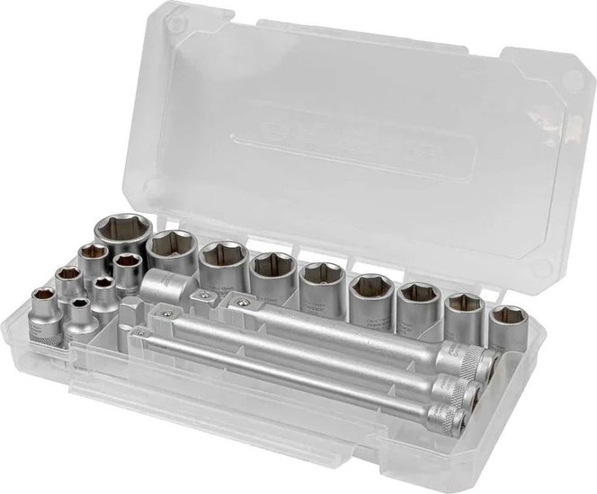 Комплектациякейс, удлинитель (1/4" 150 мм, 3/8" 150 мм, 1/2" 125 мм), адаптер (1/2"(F)х3/8"(M), 1/4"(F)х3/8"(M))
