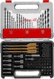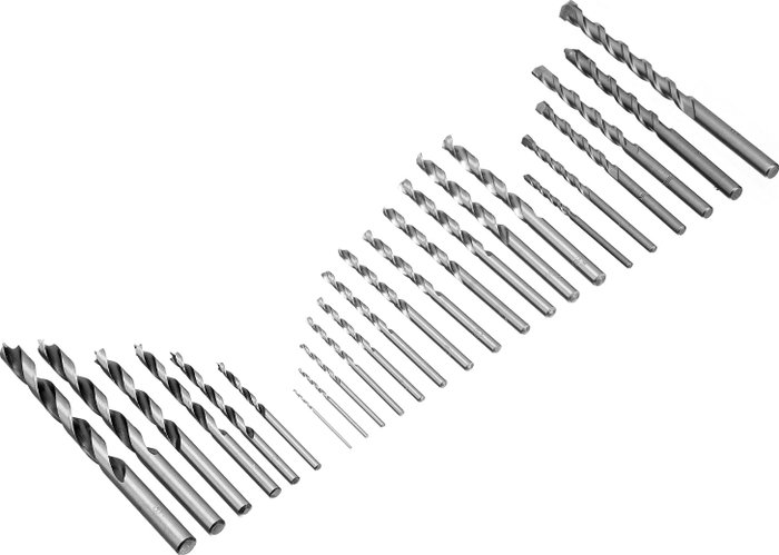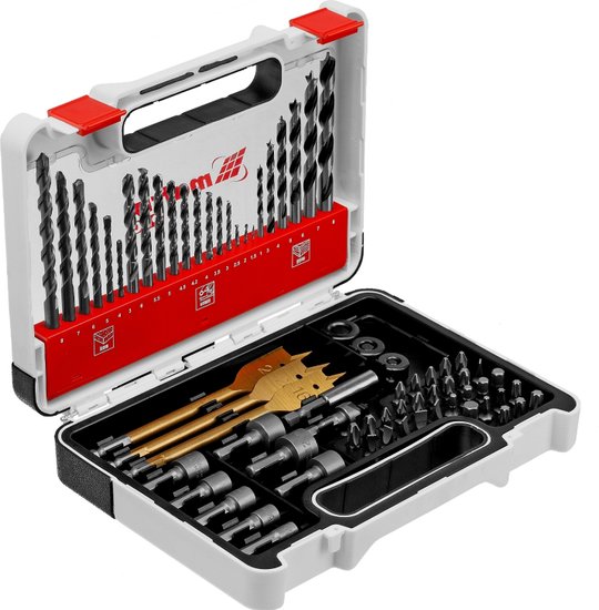 • Комплектация Сверло по металлу 1, 1,5, 2, 2,5, 3, 3,5, 4, 4,2, 4,5, 5, 5,5, 6 12 шт Сверло по бетону 3, 4, 5, 6, 7, 8 6 шт Сверло по дереву 3, 4, 5, 6, 7, 8 6 шт Бита 25 мм PH1, PH2, PH3, PZ1, PZ2, PZ3, SL4, SL5, SL6, TORX15, TORX20, TORX25, TORX27, TORX30, TORX35, HEX3, HEX4, HEX5, HEX6, HEX7 30 шт Головка торцевая 5, 6, 7, 8, 10, 11, 12, 13 8 шт Сверло перовое по дереву 16, 20,22 3 шт Стопорное кольцо 6, 8, 10 3 шт Зенковка по дереву 1 шт Адаптер для бит с магнитом 1 шт Ключ шестигранный 1 шт Пластиковый кейс 1 шт