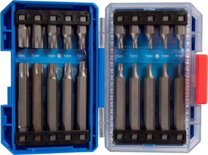 • Размер биты H5, H6, H8, H10, M5, M6, M8, M9, M10, M12, M14, T10, T15, T20, T25, T27, T30, T40, T45, T50, T55, T60