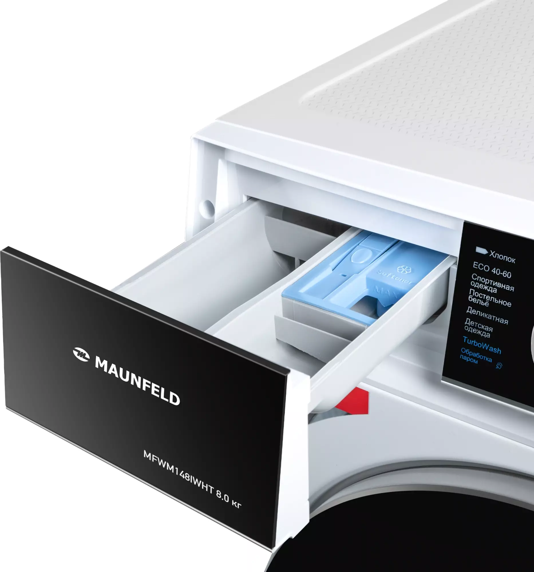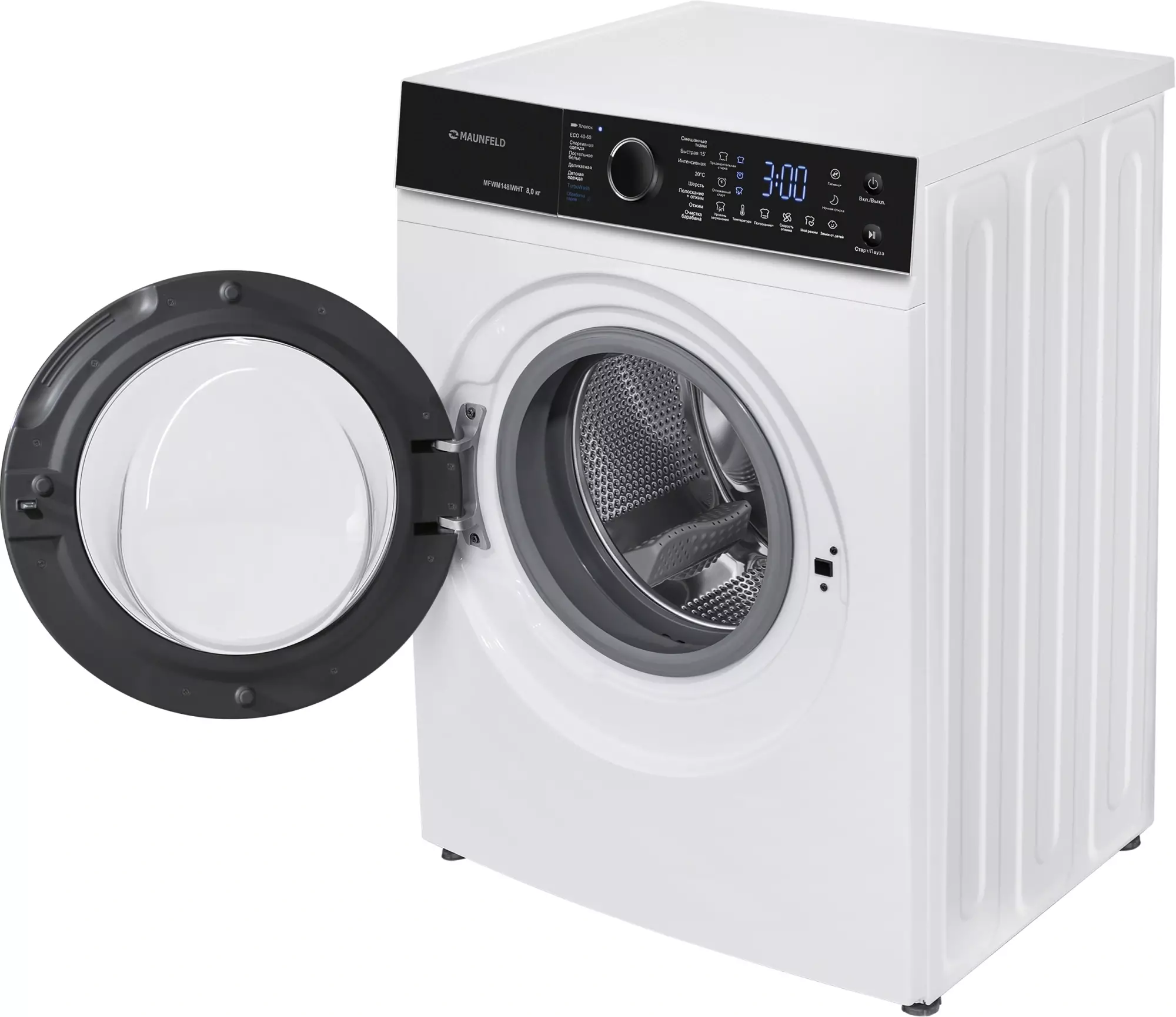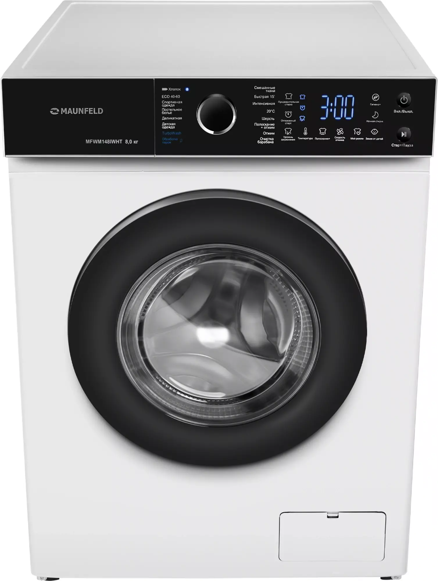 Стиральная машина полноразмерная Maunfeld MFWM148IWHT, с фронтальной загрузкой, 8кг, 1400об/мин, русский интерфейс (КА-00025479)