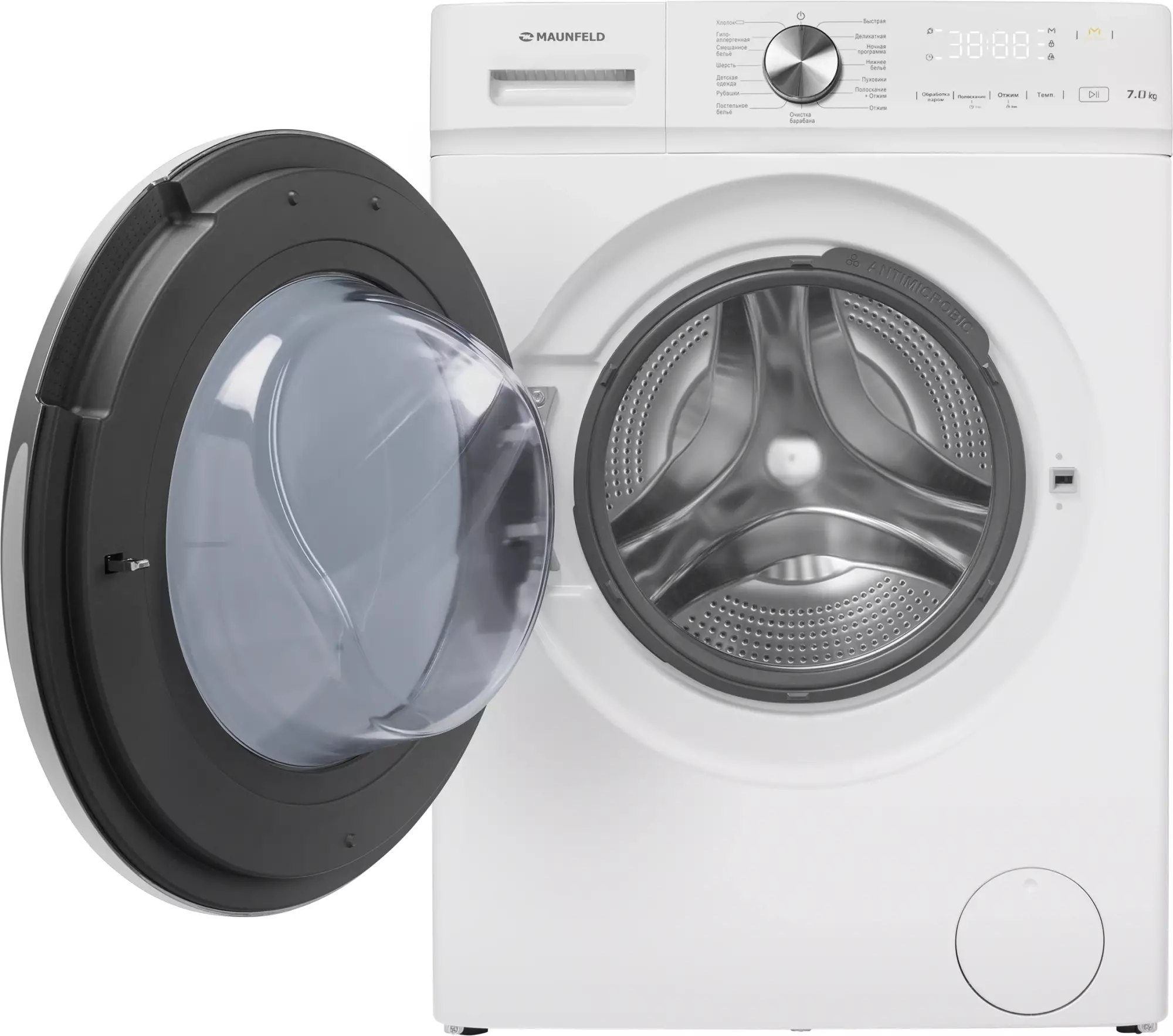 Стиральная машина средняя Maunfeld MFWM127IWH053, с фронтальной загрузкой, 7кг, 1200об/мин, русский интерфейс (КА-00025418)