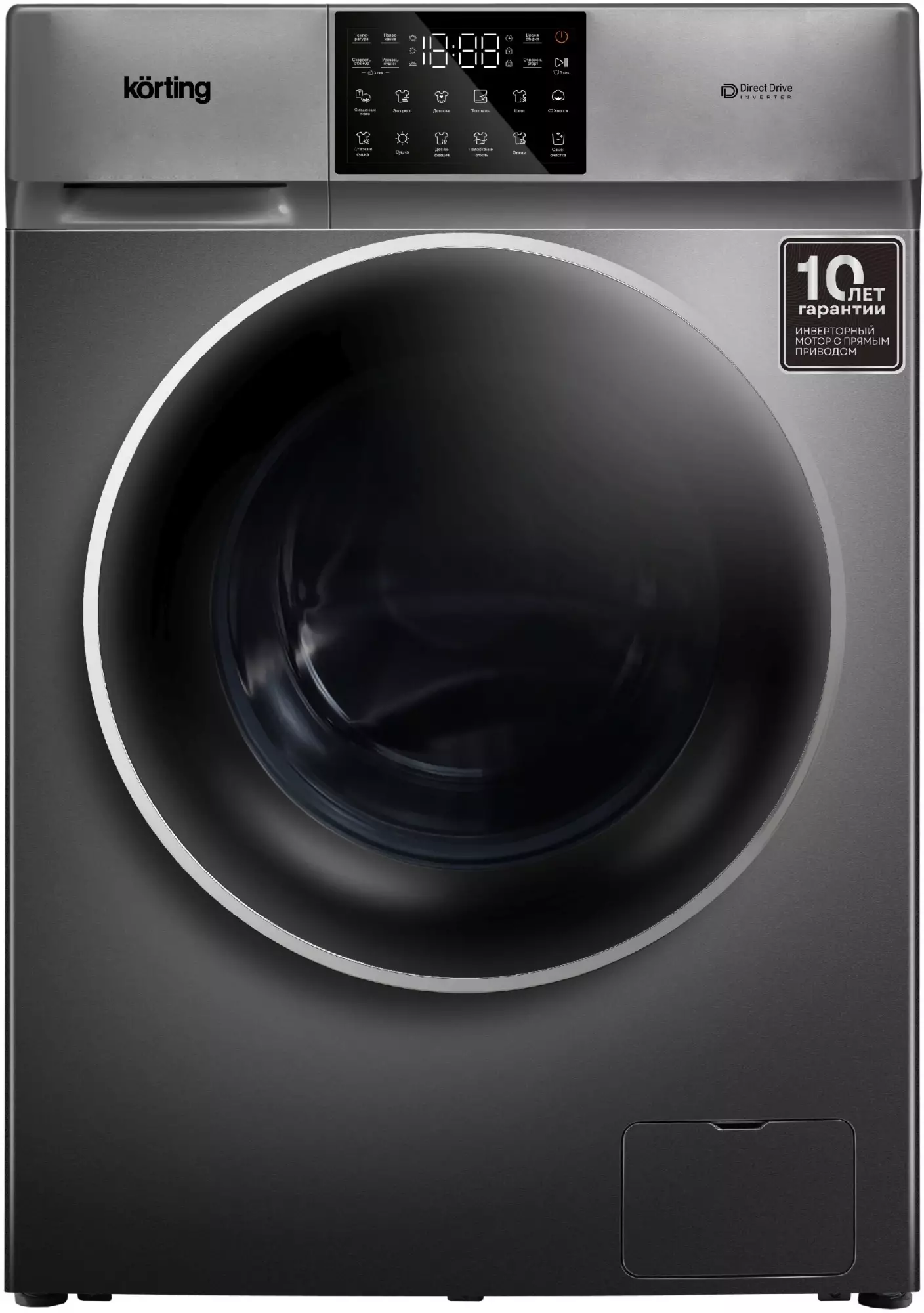Стиральная машина полноразмерная Korting Kwd 60dv107 gr, с фронтальной загрузкой, 10кг, 1200об/мин, русский интерфейс
