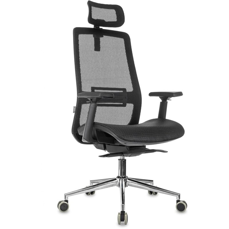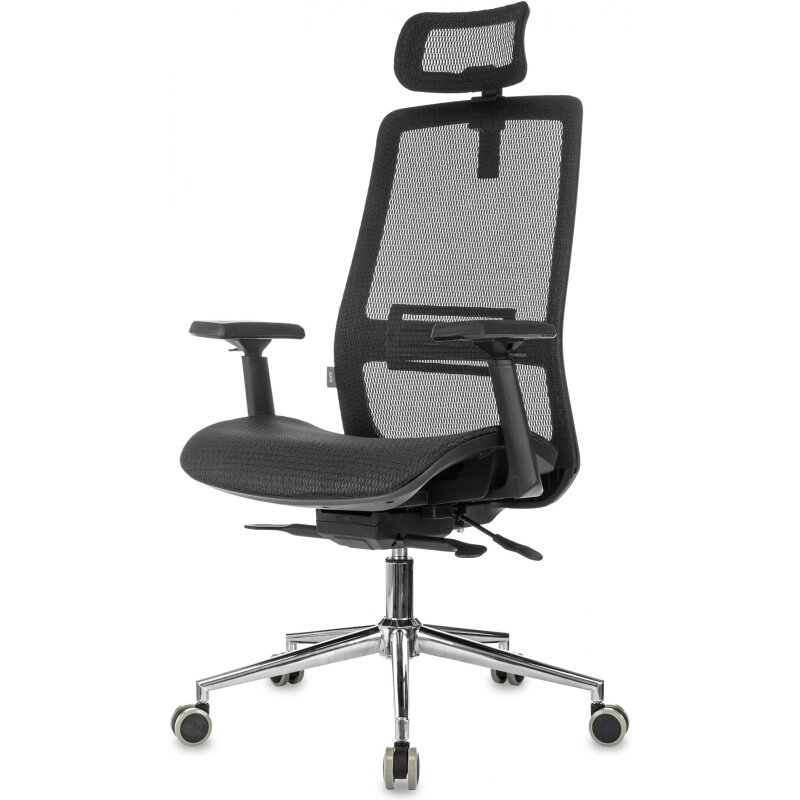 Кресло руководителя Бюрократ MC-912-H/SIT-M/B черный сетка с подголов. крестов. металл хром