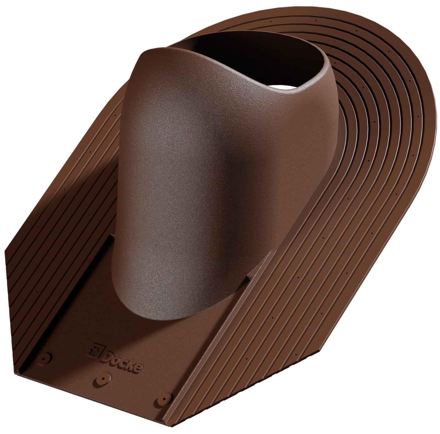 Элемент проходной Docke Root служит для монтажа на кровлю вентиляционного выхода или трубного аэратора, для организации проветривания подкровельного пространства, в качестве кровельного покрытия для установки данного эл-та используется гибкая черепица, в момент монтажа.