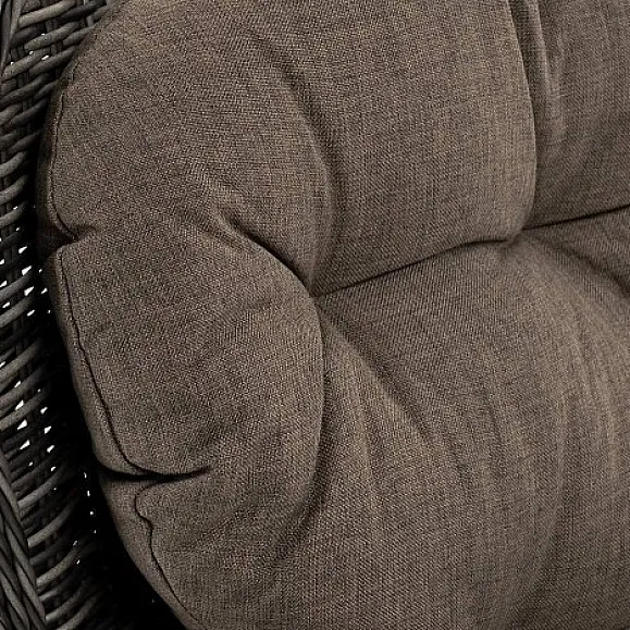 В садовое кресло укомплектовывается мягкими подушками. Они пошиты из износостойкого полиэстера серо-коричневого оттенка с плотностью 230гр/м2.