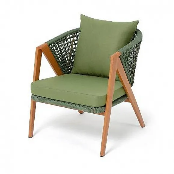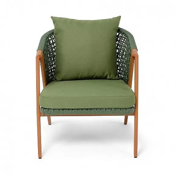 Кресло Амстердам 4SIS плетеное из роупа, каркас алюминий, роуп зеленый круглый, ткань зеленая