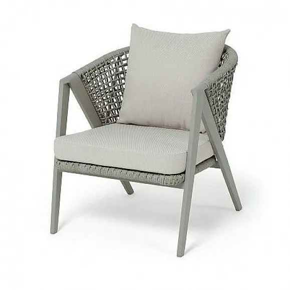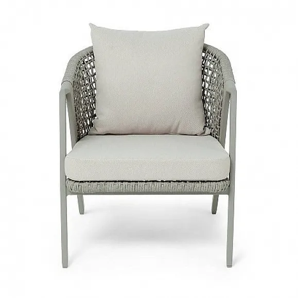 Кресло Амстердам 4SIS плетеное из роупа, каркас алюминий, роуп серый круглый, ткань бежевая