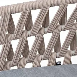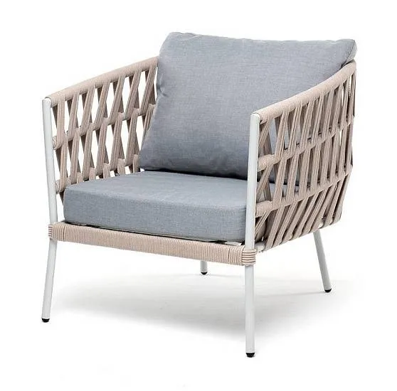 Кресло Диего 4SIS плетеное из роупа, каркас алюминий светло-серый (RAL7035) муар, роуп бежевый круглый, ткань светло-серая