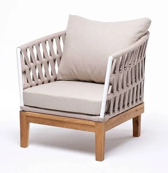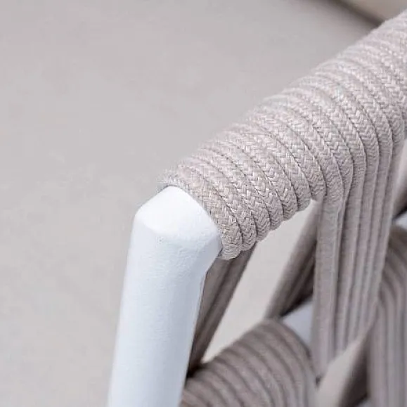 Кресло Диего 4SIS плетеное из роупа, основание дуб, каркас алюминий светло-серый (RAL7035) муар, роуп бежевый круглый, ткань бежевая 52