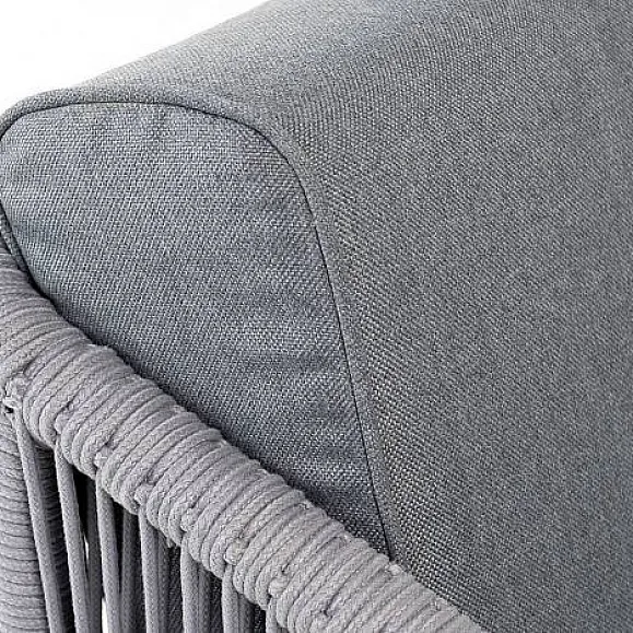 Такое плетение обладает высокой стойкостью к износу и долговечностью, сохраняя свои свойства даже при активном использовании. Особое удобство кресла обеспечивают мягкие подушки со съёмными чехлами серого цвета.