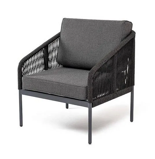 Кресло Канны 4SIS плетеное из роупа, каркас алюминий темно-серый (RAL7024) муар, роуп серый круглый, ткань серая 17
