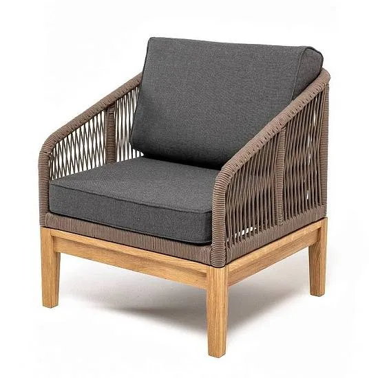 Кресло Канны 4SIS плетеное из роупа, основание дуб, роуп коричневый круглый, ткань темно-серая 27