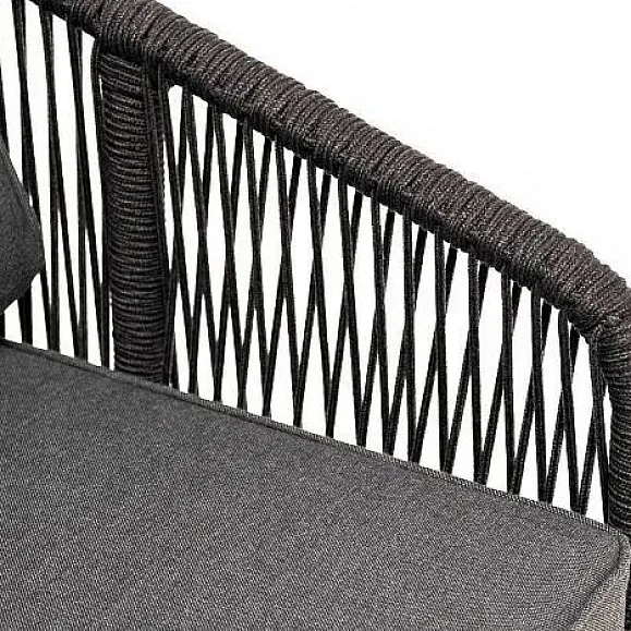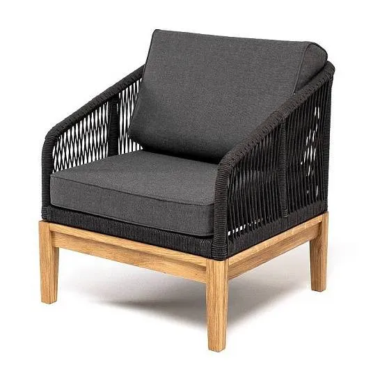 Кресло Канны 4SIS плетеное из роупа, основание дуб, роуп темно-серый круглый, ткань темно-серая 27