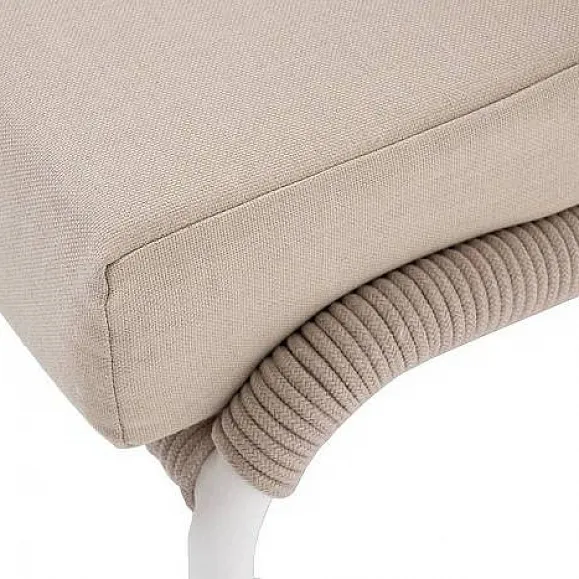 Кресло Милан 4SIS плетеное из роупа, каркас алюминий белый муар, роуп бежевый круглый, ткань бежевая 52