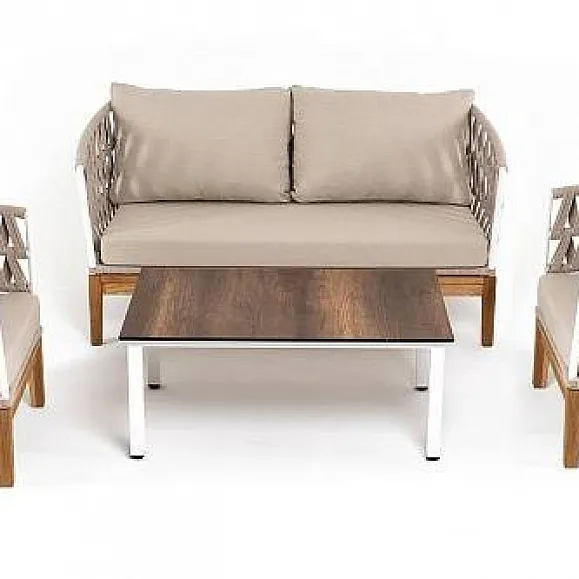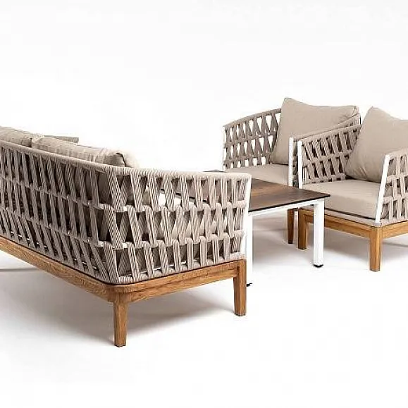 Лаунж-Зона Диего 4SIS 4-местная плетеная из роупа со столиком Канны цвета дуб, основание дуб, роуп бежевый
